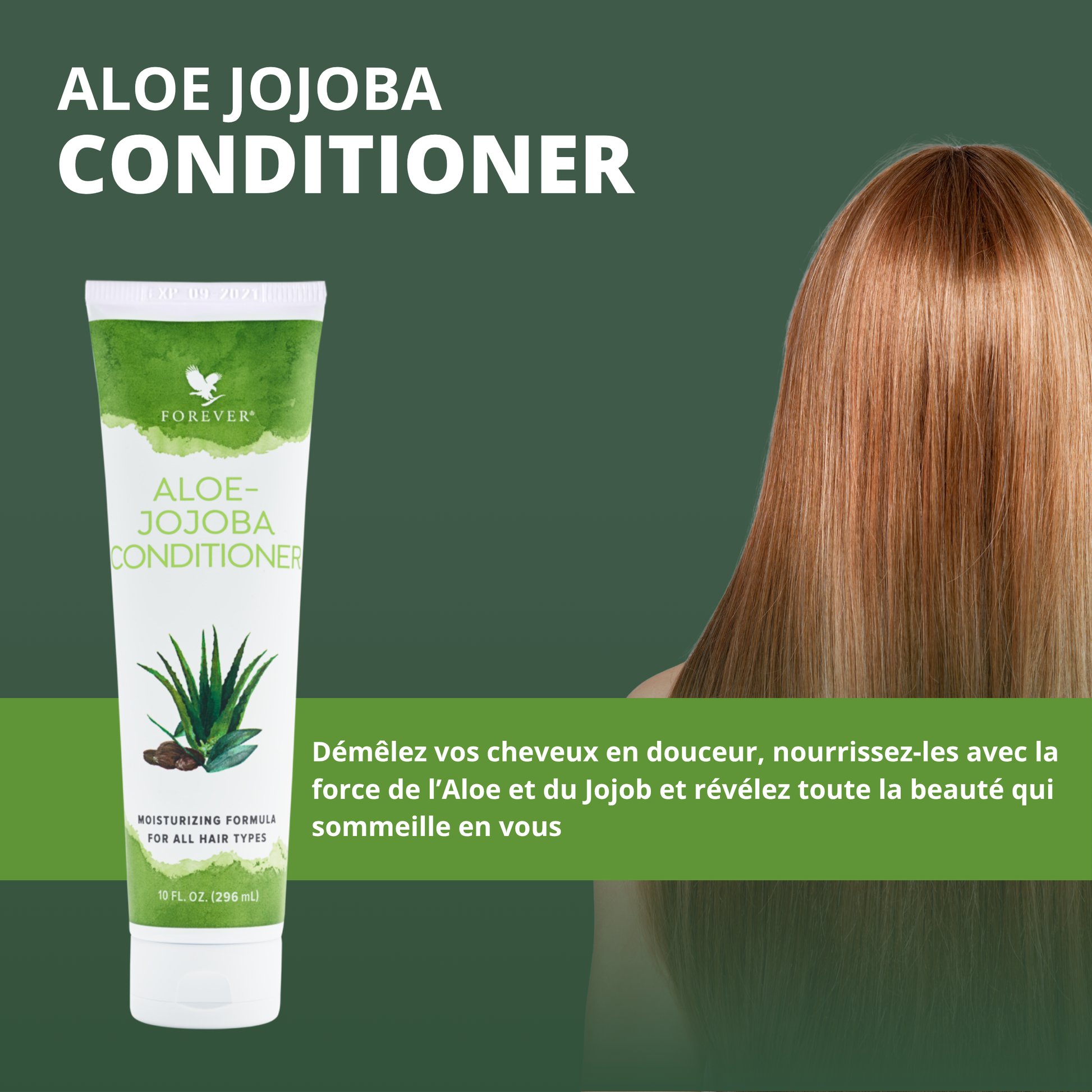 L’aloe-jojoba après-shampoing est un soin du cheveux, indispensable à associer à son entretient capilaire pour adoucir, démêler et nourrir les cheveux et leur donner de la brillance. La nouvelle formule de Aloe-Jojoba après shampoing stimulera également l’hydratation des cheveux et du cuir chevelu, il est sans sulfate. La formule des produits est parfaite pour un usage quotidien. Il comprend trois huiles différentes pour retenir l’humidité sans alourdir les cheveux, l’huile de jojoba, l’huile d’argan et l’huile d’églantier. C’est l’allier naturel du shampoing Forever.