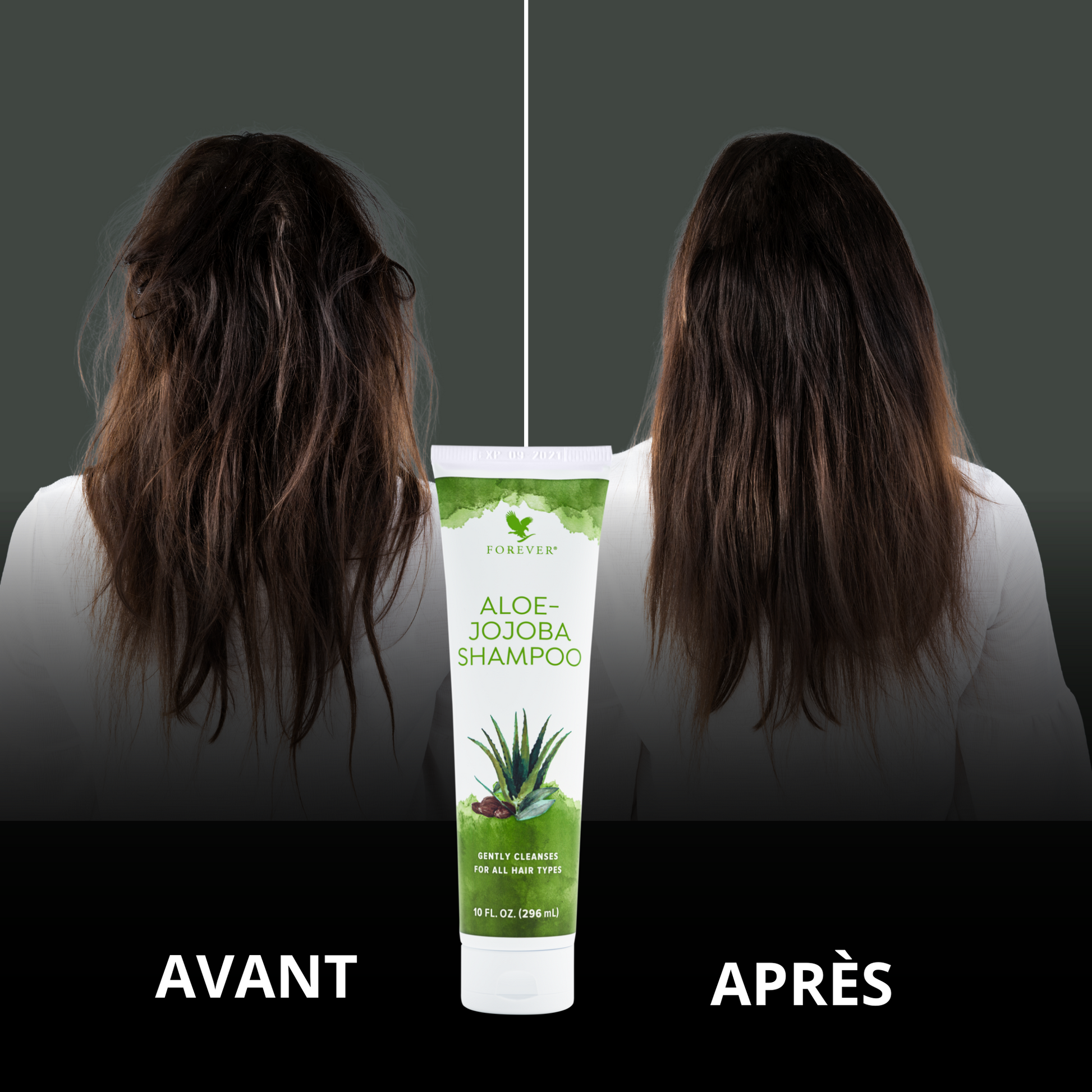 Ce soin cheveux a été conçu pour laver en profondeur et hydrater tous les types de cheveux. Ainsi, votre chevelure sera hydratée, plus brillante, saine et douce. En associant l’Aloe vera Forever pur (39.7%) à l’huile de jojoba (fortifiante pour les cheveux), et de l’huile d’eglantier, Forever vous propose cette nouvelle formule soins cheveux, Aloe-Jojoba shampoing qui sera parfaite pour un usage quotidien et fera ressortir le meilleur de vos cheveux. Sans sulfates ajoutés, ce shampoing aide à maintenir l’équilibre hydrique de votre cuir chevelu tout en le gardant apaisé.