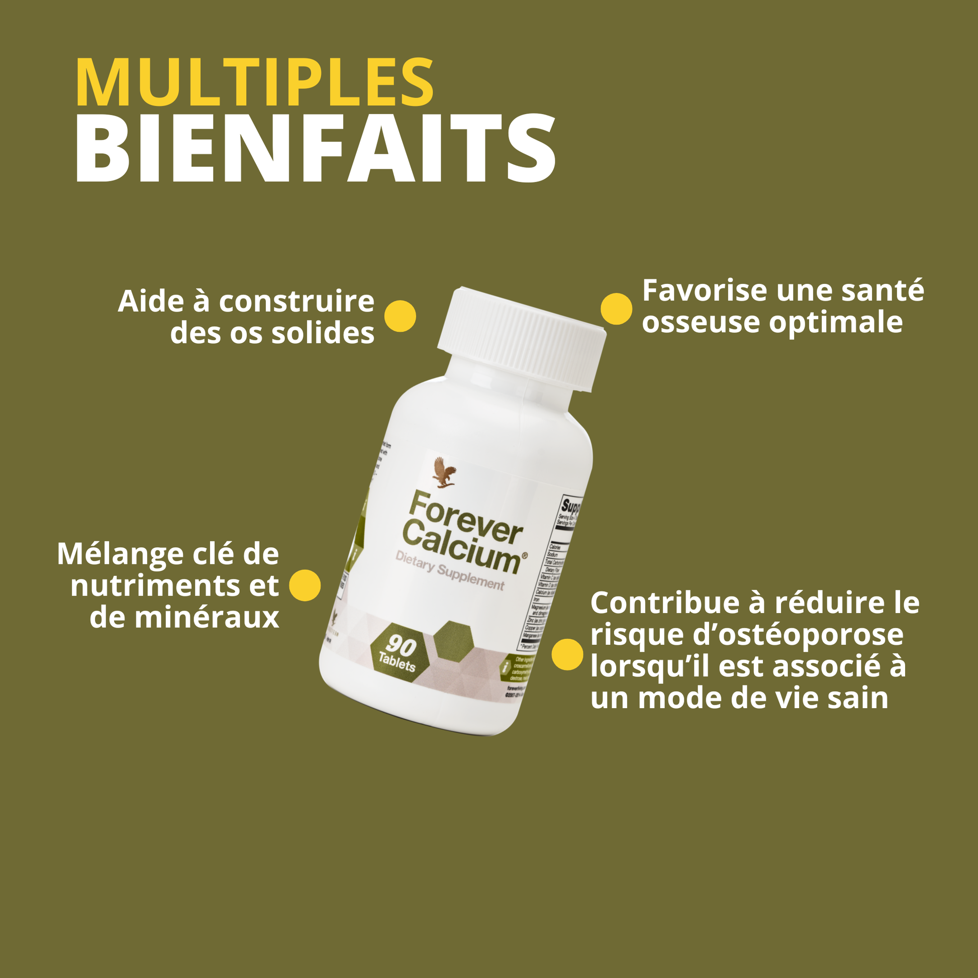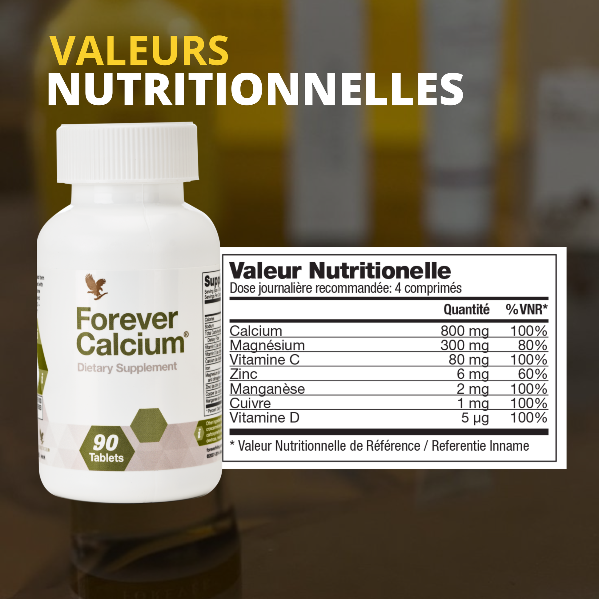 Un manque de vitamines C important, peut fragiliser les os, jusqu’à développer une ostéoporose. Cette maladie handicapante et fréquente touche près de 39% des femmes de 65 ans en France. Si les crampes musculaires ne sont pas alarmantes, elles peuvent être l’un des symptômes du manque de vitamines C. Si les crampes persistent, elles peuvent êtres un indicateur d’une carence chronique et sévère en calcium. Ce complément calcium Forever contient des vitamines C et D ainsi que des minéraux calcium, magnésium, zinc, cuivre pour contribuer au maintien d’une ossature, d’une fonction musculaire et articulaires normales. Il contribue également à la formation et à la solidité des os et des dents, à la coagulation sanguine et joue également un rôle dans la libération d’hormones. Il est indispensable d’assurer une quantité suffisante en calcium de manière permanente avec un complément de calcium si nécessaire.