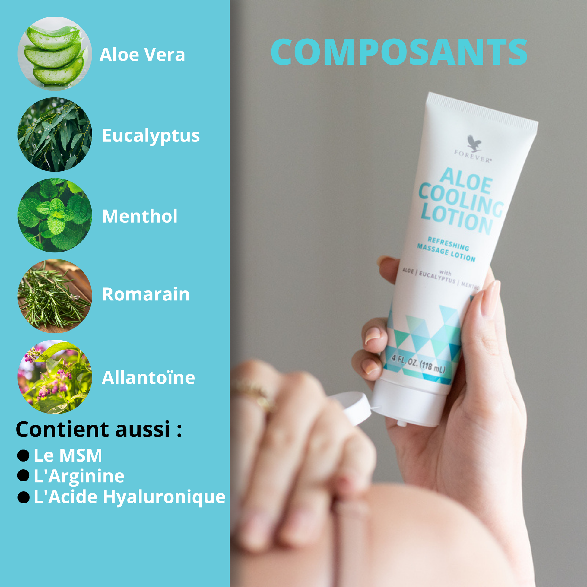 Aloe Barbadensis Leaf Juice (Stabilized Aloe Vera Gel), Aqua, Dimethyl Sulfone, Menthol, Arginine, Glycerin, Carbomer, Dimethicone, Eucalyptus Globulus Leaf Oil, Limonene, Linalool, Phenoxyethanol, Disodium EDTA, Caprylyl Glycol, Camphor, Potassium Sorbate, Citric Acid, Hexylene Glycol, Ethylhexylglycerin, Allantoin, Polysorbate 80, Sodium Benzoate, Ascorbic Acid, Sodium Hyaluronate, Glycine Soja Oil, Tocopherol, Borago Officinalis Extract, 1-2-Hexanediol, Rosmarinus Officinalis Leaf Extract.