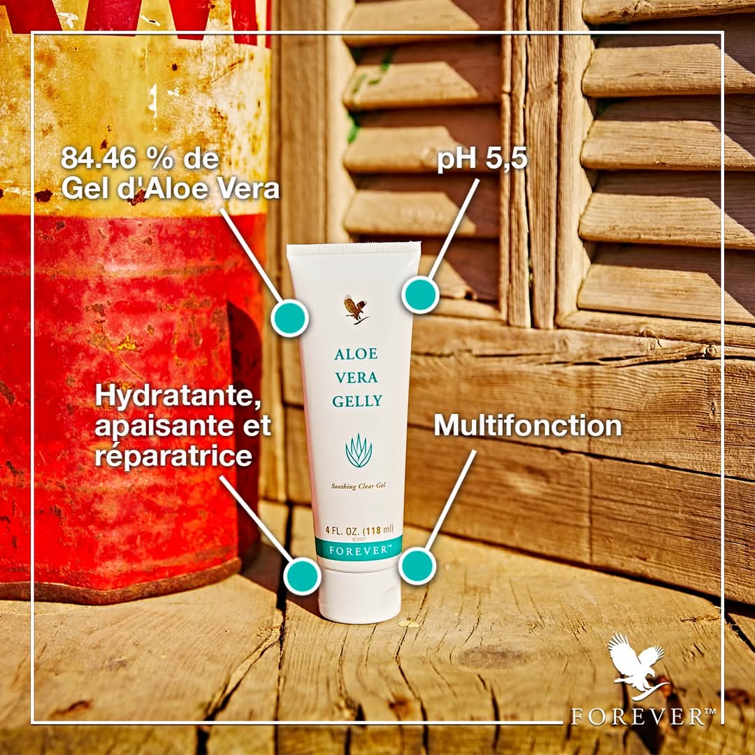Aloe Vera Gelly (gelée aloès) est particulièrement riche en aloe vera (84,4 %) pénètre dans la peau quatre fois plus vite que l’eau et traverse les trois couches de la peau (l’épiderme, le derme et l’hypoderme) et apporte à la peau une hydratation immédiate. Son action est très rapide.