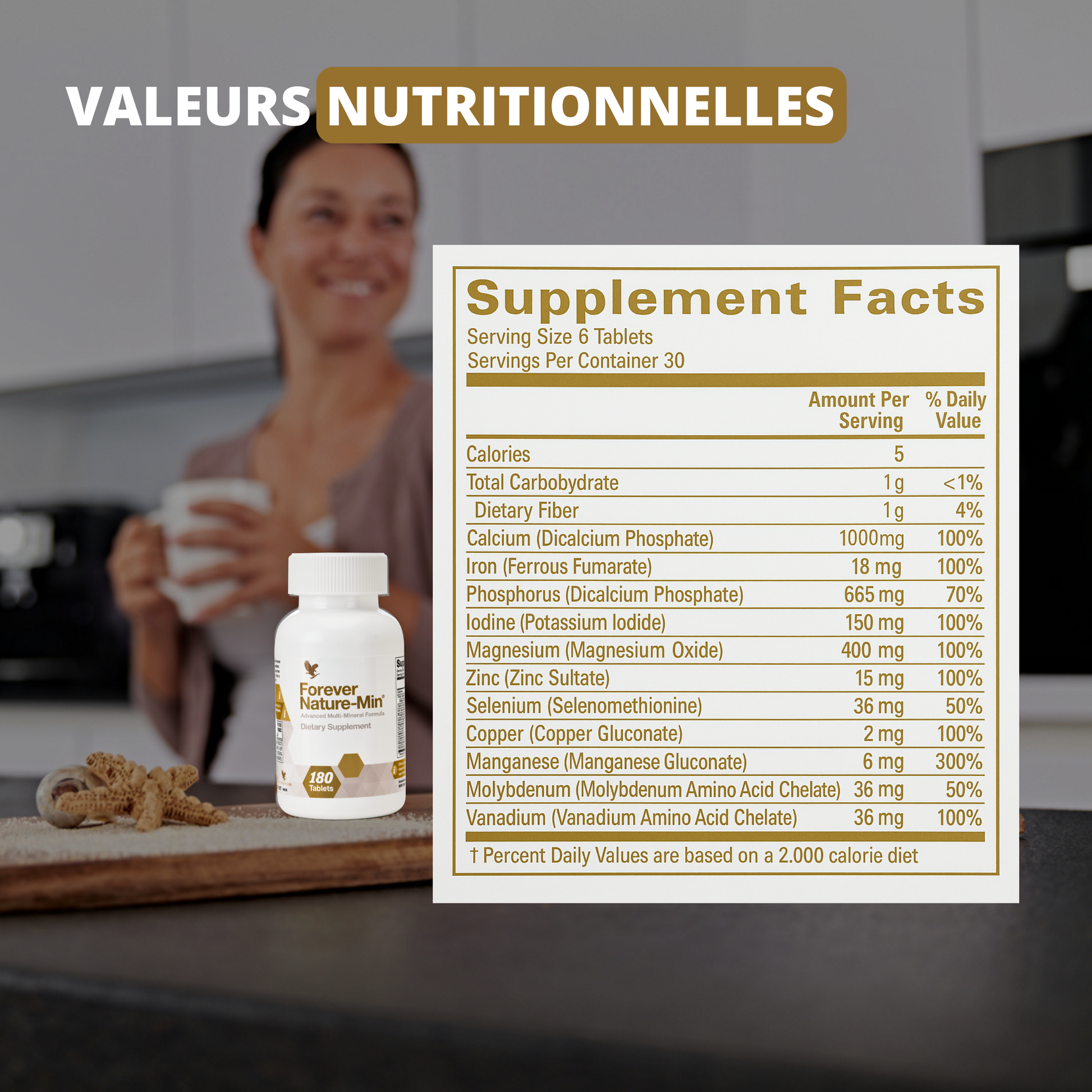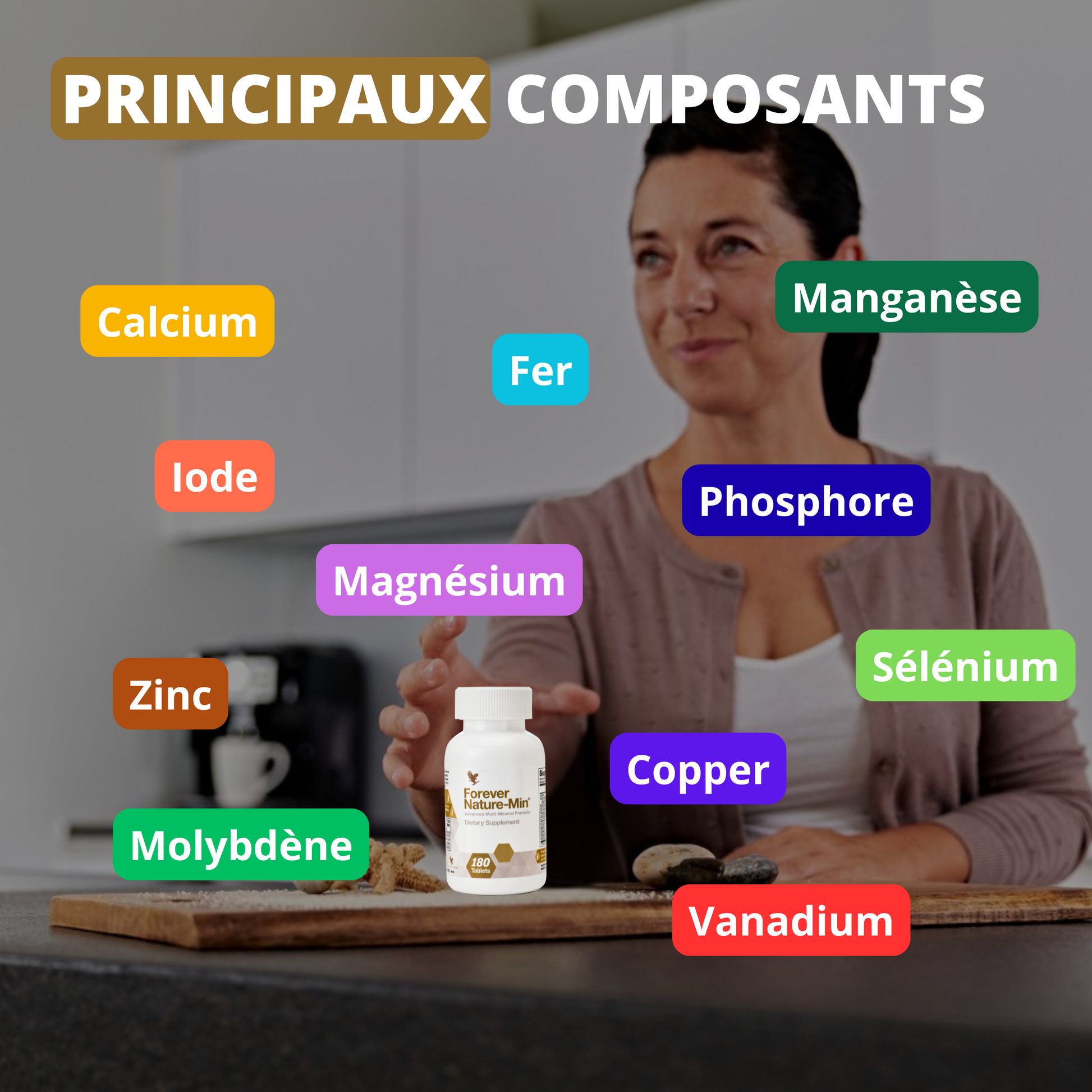 Grâce à sa formule complète et équilibrée, le Forever Nature-Min contribue à renforcer les os et les articulations, soutenir les fonctions musculaires, nerveuses et immunitaires tout en optimisant l’assimilation des nutriments.