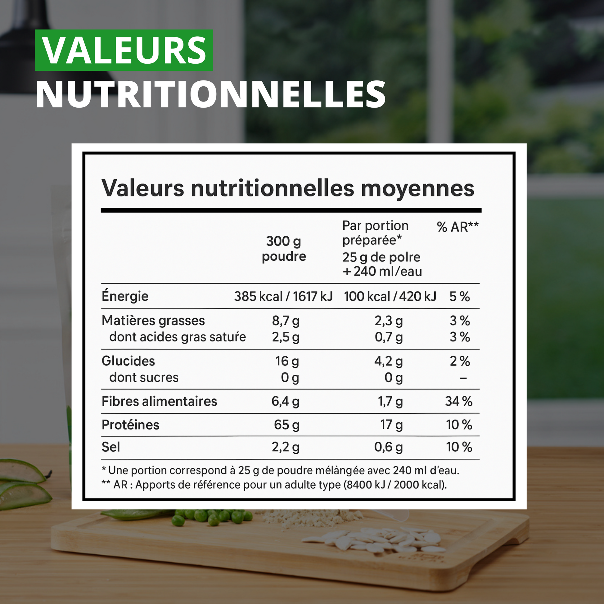 •17 grammes de protéines de pois et de citrouilles de haute qualité